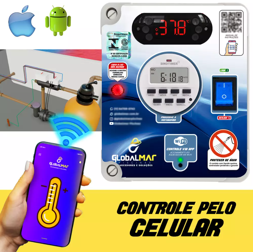 Com tecnologia Wi-Fi integrada, permite controle total via aplicativo no celular, para você ajustar a temperatura da sua piscina de onde estiver. Seu sistema inteligente regula o funcionamento conforme a demanda, otimizando o consumo de energia.