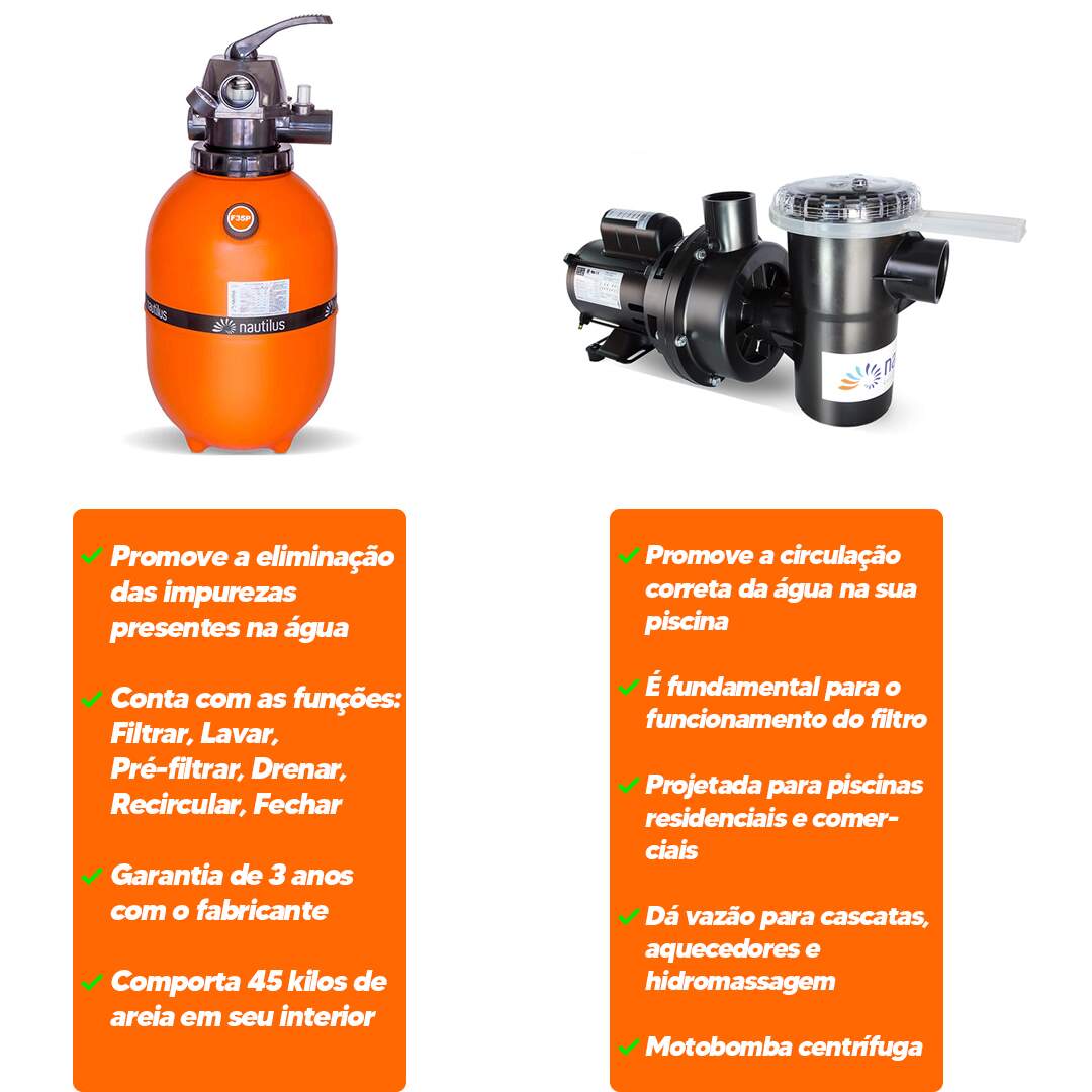 KIT FILTRO F350 MOTOBOMBA 1/3CV NAUTILUS COM AREIA